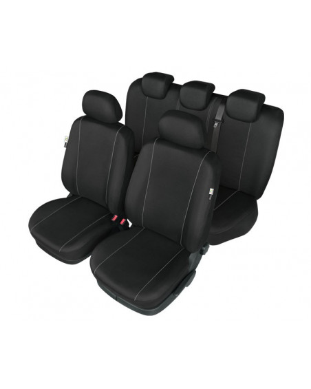 Pokrowce wykonane są w całości w kolorze czarnym z materiału który jest podobny do tapicerki większości samochodów, co jest ich dużym atutem. Przyjemna i miękka tkanina, niezwykle dobrze prezentuje się we wnętrzu każdego samochodu. Pokrowce łatwo utrzymać w czystości, gdyż można je wyprać zgodnie z informacją na metce- w temperaturze 40°. Dzięki nim oryginalna tapicerka samochodu zostanie przez dłuższy czas w dobrym stanie. Produkt serii BASIC LINE, której hasłem przewodnim jest – bardzo dobra jakość w przystępnej cenie. Produkowany z dobrej jakości surowców . Pokrowce tej marki spełniają wszelkie normy wytrzymałościowe i jakościowe. Ich staranne wykonanie z dobrych materiałów, doskonale sprawdza się w branży samochodowej.