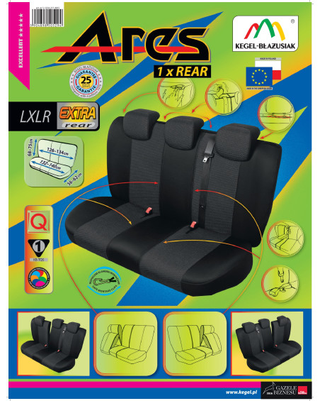 Pokrowce dopasowane ARES zostały wykonane z wysokogatunkowego materiału żakardowego, co w połączeniu ze starannością wykończenia nawet najdrobniejszych detali, zadowoli najbardziej wymagających klientów. Dzięki odpowiedniej budowie, pokrowce dobrze dopasowują się do siedzeń, a podlaminowanie po wewnętrznej stronie całego materiału trudnopalną pianką PUR, zapobiega ich przesuwaniu. Oferta skierowana do właścicieli samochodów osobowych, którzy chcą zadbać o wnętrza swoich pojazdów oraz dodać im szyku i elegancji. Pokrowce samochodowe ARES bardzo dobrze chronią oryginalną tapicerkę samochodu przed przecieraniem i zniszczeniem, a gustowna, klasyczna stylistyka wywołuje pozytywne wrażenia estetyczne. Stonowana kolorystyka- czerń wraz z delikatną szarą fakturą idealnie wkomponuje się do wnętrza każdego samochodu. Dzięki odpowiedniej, przestrzennej budowie pokrowce dobrze dopasowują się do foteli. Materiał idealnie przylega do foteli, zastępując ich właściwą tapicerkę. Dokładnie z takich materiałów wykonywane są oryginalne poszycia foteli nowych pojazdów dla fabryk samochodowych. Zaletą pokrowców ARES jest to, że zakrywają całą tylną powierzchnię oparcia. Ta właściwość sprawia, że bardzo dobrze prezentują się także z tyłu fotela, jednocześnie chroniąc go przed zabrudzeniami i uszkodzeniami (ważne jest to szczególnie dla osób posiadających małe dzieci). Profesjonalne wykonanie z materiałów wysokiej jakości gwarantuje długi czas użytkowania.