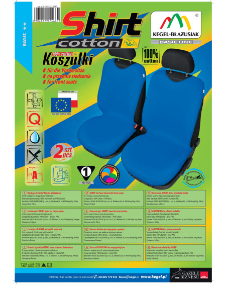 Pokrowce koszulki COTTON (teraz SHIRT COTTON- ulepszona wersja produkowanych od ponad 17 lat pokrowców koszulek) zostały wykonane z wysokogatunkowego naturalnego materiału (bawełna 100%), co w połączeniu ze starannością wykończenia nawet najdrobniejszych detali, zadowoli najbardziej wymagających klientów. Dzięki odpowiedniej budowie i nowatorskiej konstrukcji, pokrowce są dobrze dopasowane do foteli i dobrzae przylegają do nich, a podlaminowanie po wewnętrznej stronie całego materiału pianką PUR, zapobiega ich przesuwaniu. SHIRT COTTON są większe o ponad 20% od ich poprzedniej wersji, przez co znacznie lepiej pasują na fotele obecnie produkowanych samochodów. Jest to spowodowane tym, że fotele samochodów nowszych są większe od foteli samochodów sprzed 15 lat. Nową cechą pokrowców koszulek jest to, że zakrywają całą użytkową część fotela, przez co lepiej chronią fotel przed uszkodzeniami i zabrudzeniami. Nie zakrywają natomiast boków fotela, przez co mogą być bezpiecznie użytkowane na fotelach z Air Bag. Pokrowce koszulki ochronią i jednocześnie, w sposób bardzo zauważalny, odmienią fotele samochodowe, nadając autu niepowtarzalny charakter.