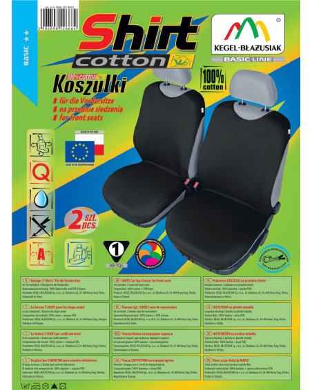 Pokrowce koszulki COTTON (teraz SHIRT COTTON- ulepszona wersja produkowanych od ponad 17 lat pokrowców koszulek) zostały wykonane z wysokogatunkowego naturalnego materiału (bawełna 100%), co w połączeniu ze starannością wykończenia nawet najdrobniejszych detali, zadowoli najbardziej wymagających klientów. Dzięki odpowiedniej budowie i nowatorskiej konstrukcji, pokrowce są dobrze dopasowane do foteli i dobrzae przylegają do nich, a podlaminowanie po wewnętrznej stronie całego materiału pianką PUR, zapobiega ich przesuwaniu. SHIRT COTTON są większe o ponad 20% od ich poprzedniej wersji, przez co znacznie lepiej pasują na fotele obecnie produkowanych samochodów. Jest to spowodowane tym, że fotele samochodów nowszych są większe od foteli samochodów sprzed 15 lat. Nową cechą pokrowców koszulek jest to, że zakrywają całą użytkową część fotela, przez co lepiej chronią fotel przed uszkodzeniami i zabrudzeniami. Nie zakrywają natomiast boków fotela, przez co mogą być bezpiecznie użytkowane na fotelach z Air Bag. Pokrowce koszulki ochronią i jednocześnie, w sposób bardzo zauważalny, odmienią fotele samochodowe, nadając autu niepowtarzalny charakter.