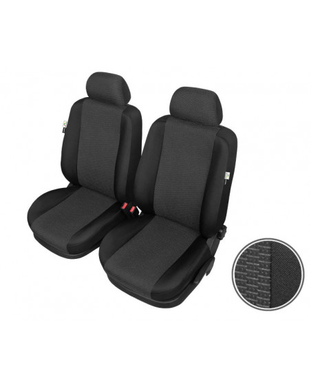 Pokrowce dopasowane ARES zostały wykonane z wysokogatunkowego materiału żakardowego, co w połączeniu ze starannością wykończenia nawet najdrobniejszych detali, zadowoli najbardziej wymagających klientów. Dzięki odpowiedniej budowie, pokrowce dobrze dopasowują się do siedzeń, a podlaminowanie po wewnętrznej stronie całego materiału trudnopalną pianką PUR, zapobiega ich przesuwaniu. Oferta skierowana do właścicieli samochodów osobowych, którzy chcą zadbać o wnętrza swoich pojazdów oraz dodać im szyku i elegancji. Pokrowce samochodowe ARES bardzo dobrze chronią oryginalną tapicerkę samochodu przed przecieraniem i zniszczeniem, a gustowna, klasyczna stylistyka wywołuje pozytywne wrażenia estetyczne. Stonowana kolorystyka- czerń wraz z delikatną szarą fakturą idealnie wkomponuje się do wnętrza każdego samochodu. Dzięki odpowiedniej, przestrzennej budowie pokrowce dobrze dopasowują się do foteli. Materiał idealnie przylega do foteli, zastępując ich właściwą tapicerkę. Dokładnie z takich materiałów wykonywane są oryginalne poszycia foteli nowych pojazdów dla fabryk samochodowych. Zaletą pokrowców ARES jest to, że zakrywają całą tylną powierzchnię oparcia. Ta właściwość sprawia, że bardzo dobrze prezentują się także z tyłu fotela, jednocześnie chroniąc go przed zabrudzeniami i uszkodzeniami (ważne jest to szczególnie dla osób posiadających małe dzieci). Profesjonalne wykonanie z materiałów wysokiej jakości gwarantuje długi czas użytkowania.