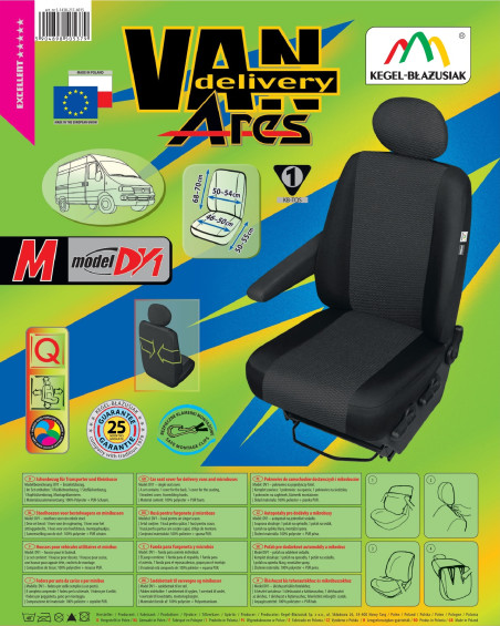 Pokrowce dopasowane ARES zostały zaprojektowane z myślą o właścicielach samochodów dostawczych i mikrobusów, chcących zadbać o wnętrza swoich pojazdów- dodać im klasy i elegancji oraz ochronić tapicerkę przed wszelkiego rodzaju zabrudzeniami i uszkodzeniami. Dzięki odpowiedniej budowie, materiał dobrze dopasowuje się do siedzenia, a podlaminowanie po wewnętrznej stronie trudno-palną pianką PUR, zapobiega przesuwaniu pokrowca. Pokrowce ARES spełniają najwyższe normy wytrzymałościowe. Solidność wykonania oraz gwarancję bezpieczeństwa potwierdzają badania. Przy produkcji pokrowców została zastosowana technologia bezpiecznego szwu, rozrywającego się podczas wybuchu bocznych poduszek powietrznych. Profesjonalne wykonanie z materiałów wysokiej jakości gwarantuje długi czas użytkowania. Oferowane pokrowce z pewnością zaspokoją oczekiwania nawet najbardziej wymagających klientów. Udzielana na 25-miesięcy gwarancja da Ci pewność, że kupujesz produkt najwyższej jakości.