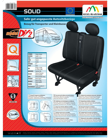 Pokrowce dopasowane SOLID to bardzo trwałe i praktyczne a zarazem gustowne i eleganckie pokrycia foteli, przeznaczone do samochodów dostawczych. Produkt skierowany do osób pragnących uatrakcyjnić wnętrze swojego pojazdu oraz zabezpieczyć tapicerkę przed pobrudzeniem, przecieraniem i zniszczeniem. Dzięki pokrowcom nawet stare wnętrze nabierze świeżości i zmieni się nie do poznania. Dzięki dobrze odwzorowanym kształtom foteli, pokrowce tej linii są dobrze dopasowane do konkretnych modeli samochodów. Przystosowane do siedzeń posiadających pełny pas bezpieczeństwa, wychodzący z podwójnej kanapy pasażerów. Kupując nasze pokrowce masz pewność, że otrzymasz towar, który będzie ci służył przez długi czas.
