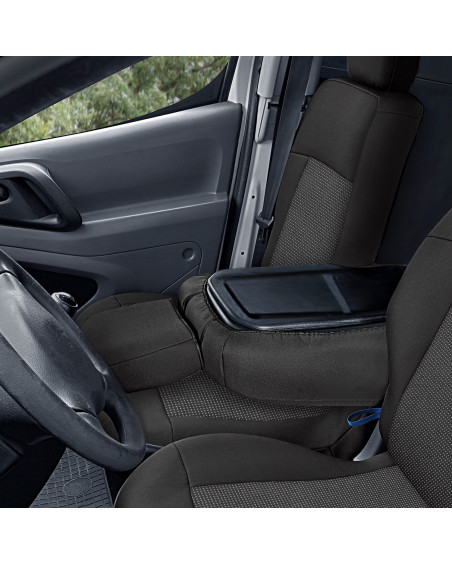 - Wyposażone w specjalne zapinane na rzepę rozcięcie, umożliwiające wyciągnięcie podłokietnika w pokrowcu na fotel dla kierowcy zarówno z prawej jak i lewej strony (wersja angielska)