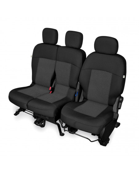 1 pokrowiec na podwójny fotel pasażerów z dzielonym siedziskiem i oparciem (pokrowiec na oparcie dostosowany do stolika w tylnej części fotela)