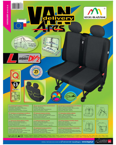 Pokrowce dopasowane ARES zostały zaprojektowane z myślą o właścicielach samochodów dostawczych i mikrobusów, chcących zadbać o wnętrza swoich pojazdów- dodać im klasy i elegancji oraz ochronić tapicerkę przed wszelkiego rodzaju zabrudzeniami i uszkodzeniami. Dzięki odpowiedniej budowie, materiał dobrze dopasowuje się do siedzenia, a podlaminowanie po wewnętrznej stronie pianką PUR, zapobiega przesuwaniu pokrowca. Pokrowce ARES spełniają najwyższe normy wytrzymałościowe. Profesjonalne wykonanie z materiałów wysokiej jakości gwarantuje długi czas użytkowania. Oferowane pokrowce z pewnością zaspokoją oczekiwania nawet najbardziej wymagających klientów. Udzielana na 25-miesięcy gwarancja da Ci pewność, że kupujesz produkt najwyższej jakości.