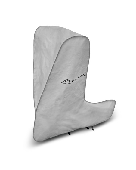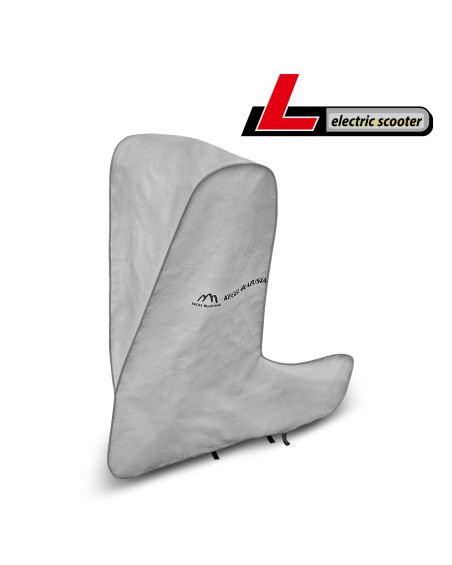 Membranowy, nieprzemakalny i jednocześnie paroprzepuszczalny pokrowiec do ochrony hulajnogi elektrycznej przed niekorzystnym wpływem środowiska. Odporny na warunki atmosferyczne pokrowiec wykonany w całości z membrany wysokoparoprzepuszczalnej. Nieprzemakalny nawet podczas intensywnego deszczu i jednocześnie paroprzepuszczalny, odprowadzający na zewnątrz wilgoć spod pokrowca. Ogranicza korozję i starzenie się elementów z tworzyw sztucznych, chroni przed blaknięciem i matowieniem lakieru oraz elementów chromowanych. Odpowiedni do krótkookresowego przechowywania hulajnogi elektrycznej na zewnątrz pomieszczeń. Mocowany jest za pomocą elastycznego ściągacza, dzięki czemu jest łatwy do zakładania i ściągania. Dodatkowe zapięcia pod hulajnogą zabezpieczają przed zerwaniem pokrowca przez wiatr. Odpowiedni także do użytku wewnątrz pomieszczeń.