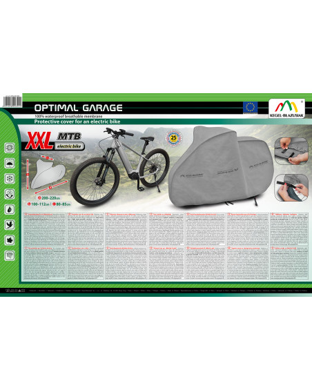 Membranowy, nieprzemakalny i jednocześnie paroprzepuszczalny pokrowiec do ochrony roweru elektrycznego przed niekorzystnym wpływem środowiska. Odporny na warunki atmosferyczne pokrowiec wykonany w całości z membrany wysokoparoprzepuszczalnej. Nieprzemakalny nawet podczas intensywnego deszczu i jednocześnie paroprzepuszczalny, odprowadzający na zewnątrz wilgoć spod pokrowca. Ogranicza korozję i starzenie się elementów z tworzyw sztucznych, chroni przed blaknięciem i matowieniem lakieru oraz elementów chromowanych. Odpowiedni do krótkookresowego przechowywania roweru na zewnątrz pomieszczeń. Mocowany jest za pomocą elastycznego ściągacza, dzięki czemu jest łatwy do zakładania i ściągania. Dodatkowe przypięcia do kół i zapięcie pod rowerem zabezpieczają przed zerwaniem pokrowca przez wiatr. Odpowiedni także do użytku wewnątrz pomieszczeń i do ochrony roweru bez napędu elektrycznego.
