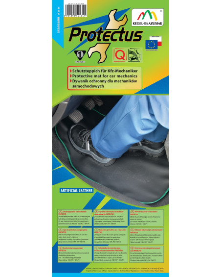 Dywanik ochronny PROTECTUS – ze skóry ekologicznej nowej generacji – nieprzemakalny, olejoodporny, smaroodporny. Zrobiony z myślą o mechanikach samochodowych, pracownikach zakładów serwisowych, osobach jeżdżących w brudnych butach roboczych a także o tych którzy chcą estetycznie zabezpieczyć wykładzinę samochodu podczas codziennej eksploatacji. Dywanik PROTECTUS należycie chroni wykładzinę podłogową lub dywaniki serwisowanego samochodu przed zabrudzeniem i uszkodzeniem. Od strony wewnętrznej podszyty jest miękką włókniną, która delikatnie przyczepia się do tapicerki. Produkt ekologiczny, do wielokrotnego stosowania. Profesjonalnie wykonany z mocnego, trwałego materiału, charakteryzuje się długą żywotnością. Zrobiony w rozmiarze uniwersalnym- do stosowania w każdym modelu samochodu. Produkt łatwy w czyszczeniu. Wysoka jakość, niska cena !