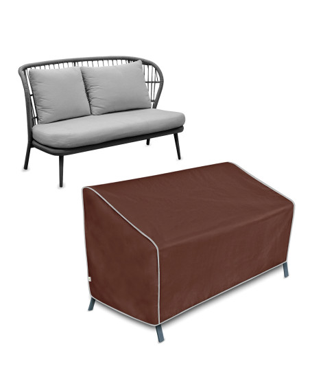 Całoroczny pokrowiec do ochrony sofy ogrodowej przechowywanej na zewnątrz przed niekorzystnym wpływem środowiska. Dzięki specjalnej konstrukcji woda podczas deszczu spływa po pokrowcu nie wnikając pod pokrowiec. Chroni sofę przed deszczem, śniegiem, szronem i promieniami słonecznymi (szkodliwym UV) oraz zanieczyszczeniami jak pył, ptasie odchody i soki z drzew. Ogranicza korozję i starzenie się elementów z tworzyw sztucznych lub drewna, chroni przed blaknięciem i matowieniem lakieru oraz elementów chromowanych. Pokrowiec jest w pełni odporny na wszystkie warunki atmosferyczne. Łatwy do zakładania i ściągania. Dodatkowe zapięcia zabezpieczają przed zerwaniem pokrowca przez wiatr. Odpowiedni także do użytku wewnątrz pomieszczeń.