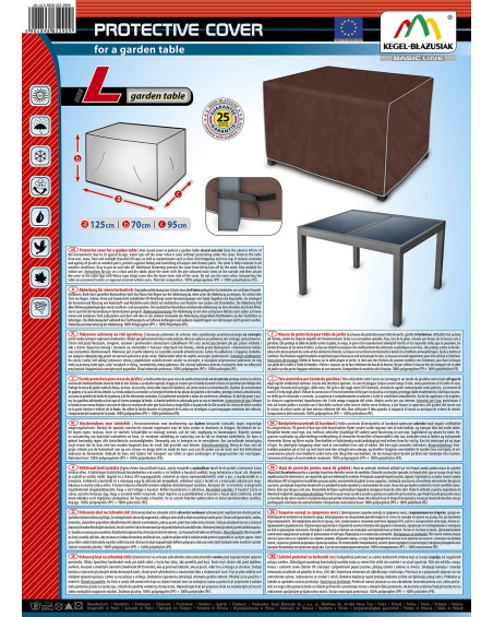 Całoroczny pokrowiec do ochrony stołu ogrodowego przechowywanego na zewnątrz przed niekorzystnym wpływem środowiska. Dzięki specjalnej konstrukcji woda podczas deszczu spływa po pokrowcu nie wnikając pod pokrowiec. Chroni stół przed deszczem, śniegiem, szronem i promieniami słonecznymi (szkodliwym UV) oraz zanieczyszczeniami jak pył, ptasie odchody i soki z drzew. Ogranicza korozję i starzenie się elementów z tworzyw sztucznych lub drewna, chroni przed blaknięciem i matowieniem lakieru oraz elementów chromowanych. Pokrowiec jest w pełni odporny na wszystkie warunki atmosferyczne. Łatwy do zakładania i ściągania. Dodatkowe zapięcia zabezpieczają przed zerwaniem pokrowca przez wiatr. Odpowiedni także do użytku wewnątrz pomieszczeń.