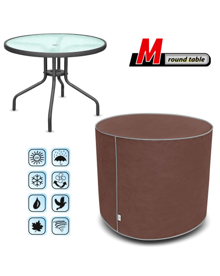 Całoroczny pokrowiec do ochrony stołu ogrodowego przechowywanego na zewnątrz przed niekorzystnym wpływem środowiska. Dzięki specjalnej konstrukcji woda podczas deszczu spływa po pokrowcu nie wnikając pod pokrowiec. Chroni stół przed deszczem, śniegiem, szronem i promieniami słonecznymi (szkodliwym UV) oraz zanieczyszczeniami jak pył, ptasie odchody i soki z drzew. Ogranicza korozję i starzenie się elementów z tworzyw sztucznych lub drewna, chroni przed blaknięciem i matowieniem lakieru oraz elementów chromowanych. Pokrowiec jest w pełni odporny na wszystkie warunki atmosferyczne. Łatwy do zakładania i ściągania. Dodatkowe zapięcia zabezpieczają przed zerwaniem pokrowca przez wiatr. Odpowiedni także do użytku wewnątrz pomieszczeń.