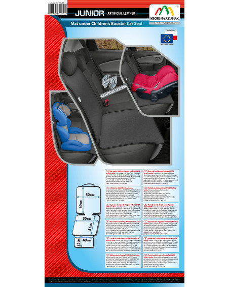 Ochronna mata pod fotelik samochodowy. Chroni siedzenie samochodowe pod fotelikiem przed uszkodzeniami i zabrudzeniami, które mogą być spowodowane przez fotelik samochodowy i przewożone dziecko. Mata jest wykonana z mocnego materiału na grubej piance. Matę łatwo założyć – wystarczy podłożyć pod fotelik samochodowy. Możliwość stosowania pod foteliki z Isofix.