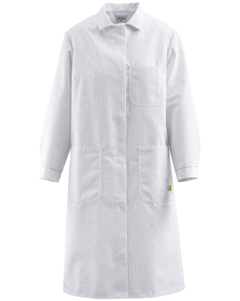 Fartuch damski antyelektrostatyczny ESD z firmowej kolekcji Protective gwarantuję bezpieczeństwo i chroni użytkownika w strefach zagrożonych wybuchem, o dużym zapyleniu lub występowania mieszanin gazów i oparów. Damski fartuch antystatyczny uszyty z wysokiej jakości materiałów – tkanina Klopman z nicią antystatyczną zapewniająca wytrzymałość, długotrwałość w użytkowaniu. Odzież wykonana przy użyciu nowoczesnych technologii, zapewniających komfort, wytrzymałość oraz bezpieczeństwo podczas noszenia.