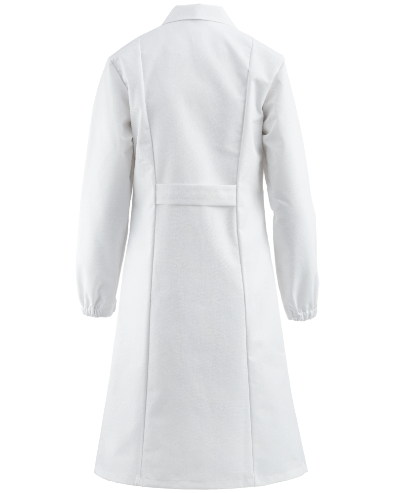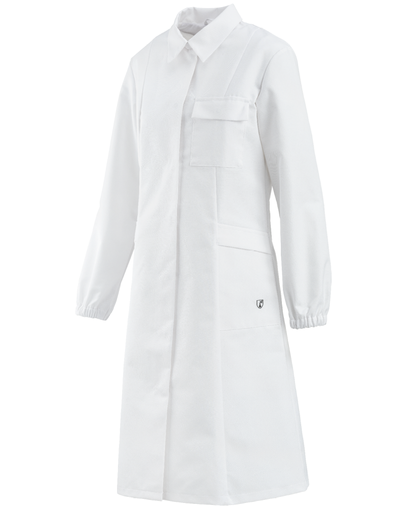 Damski fartuchi roboczy z firmowej kolekcji Protective zapewnia bezpieczeństwo i chroni użytkownika przed działaniem ciekłych chemikaliów, w przypadku ochlapania. Fartuch idealny dla pracowników laboratoryjnych, zakładów chemicznych, rafinerii oraz w miejscach, gdzie wymaga się ubrań zgodnych z normą EN 13034, w których osoba narażona jest na krótkotrwały i mało intensywny kontakt z ciekłymi substancjami chemicznymi np. przed przypadkowym polaniem kroplami olejów i rozpuszczalników, odzież chroniąca przed rozcieńczonymi kwasami i zasadami.