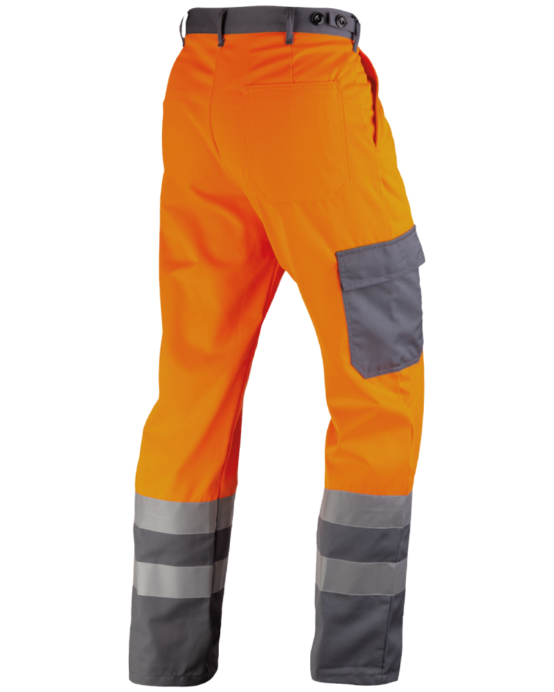 - Spodnie Hi-Vis zapinane na guzik, po bokach regulacja obwodu zapinkami.
