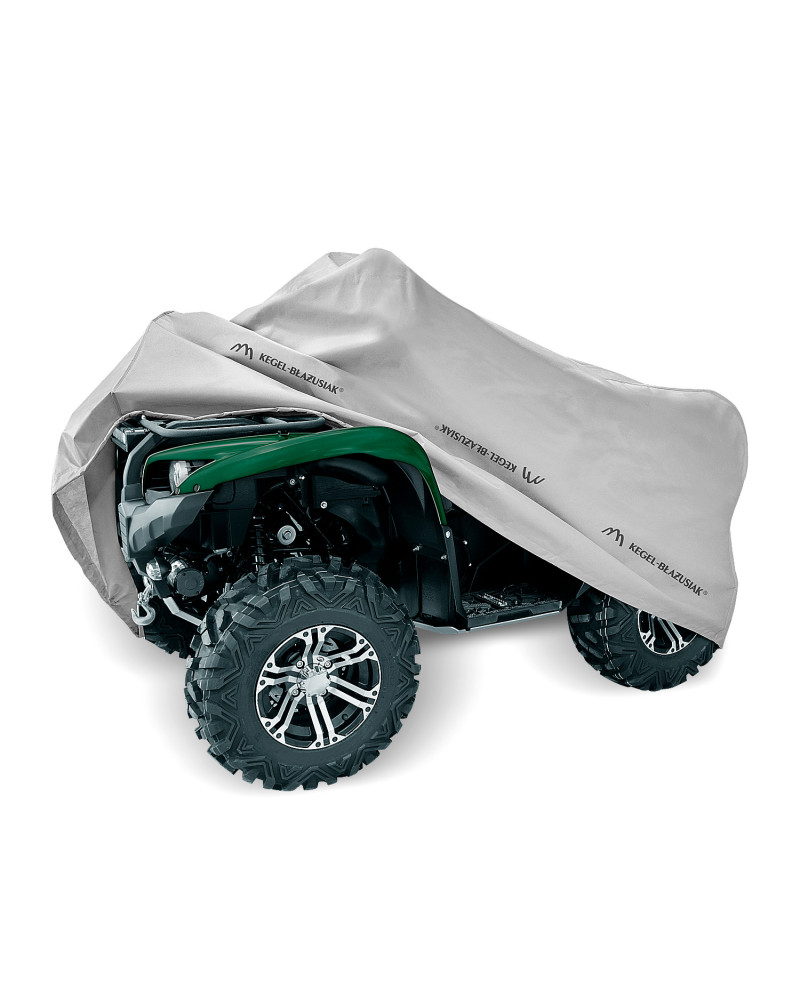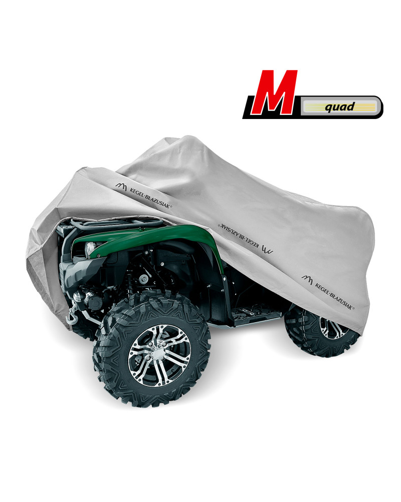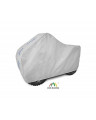 A membrane-based, waterproof and at the same time vapour-permeable cover to protect your combustion or electric quad from adverse environmental influences. Weatherproof cover made entirely of a highly vapour-permeable membrane. Waterproof even in heavy rain and at the same time vapour-permeable, wicking away moisture from under the cover. Protects against rain, snow, frost and sunlight (harmful UV) as well as contaminants such as dust, bird droppings and tree sap. Reduces corrosion and ageing of plastic parts, protects against fading and tarnishing of paintwork and chrome parts. Suitable for long or short-term outdoor storage of a combustion quad or short-term storage of an electric quad. Also suitable for indoor use. A drawstring and additional fasteners underneath the quad protect the cover from being ripped off by the wind. Holes in the cover allow the quad to be attached by the front wheel with the cover using a lock or chain.