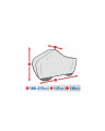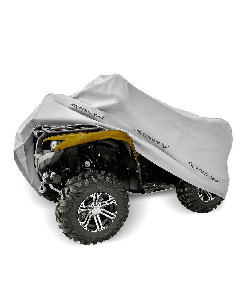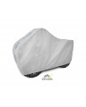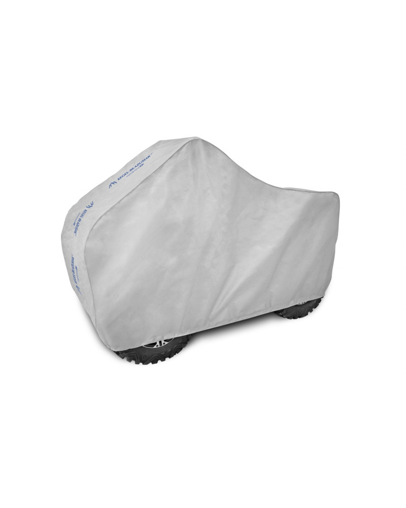 A membrane-based, waterproof and at the same time vapour-permeable cover to protect your combustion or electric quad from adverse environmental influences. Weatherproof cover made entirely of a highly vapour-permeable membrane. Waterproof even in heavy rain and at the same time vapour-permeable, wicking away moisture from under the cover. Protects against rain, snow, frost and sunlight (harmful UV) as well as contaminants such as dust, bird droppings and tree sap. Reduces corrosion and ageing of plastic parts, protects against fading and tarnishing of paintwork and chrome parts. Suitable for long or short-term outdoor storage of a combustion quad or short-term storage of an electric quad. Also suitable for indoor use. A drawstring and additional fasteners underneath the quad protect the cover from being ripped off by the wind. Holes in the cover allow the quad to be attached by the front wheel with the cover using a lock or chain.