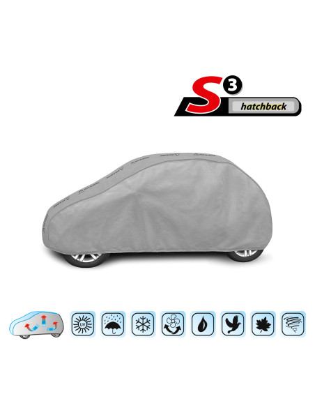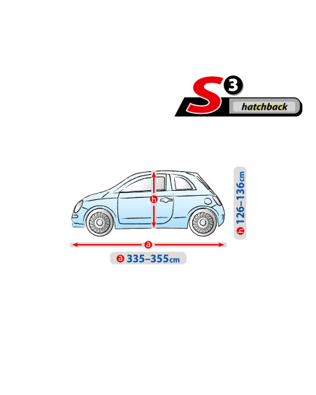 The textile material from which the car cover is made will fit both slightly smaller and larger cars of a similar shape and size not exceeding the circumference specified above.