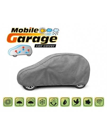 Wysokogatunkowy pokrowiec Mobile Garage to produkt dopasowany do potrzeb kierowców. Pokrowiec wykonany jest z aż 4-warstwowego materiału, który jest gruby, mocny i wytrzymały. Pokrowiec chroni cały samochód przed szkodliwym wpływem środowiska. Pokrowiec Mobile Garage to odpowiednia ochrona pojazdu przez cały rok. Jego funkcjonalność docenić można w każdej porze roku. W sezonie zimowym zapobiega osadzaniu się śniegu, szronu i lodu, a także jest odporny na przymarzanie; na jesieni chroni przed deszczem, wiatrem, liśćmi, sokami z drzew; zaś w porach letnich i wiosennych ochrania przed promieniami UV, pyłem i ptasimi odchodami.