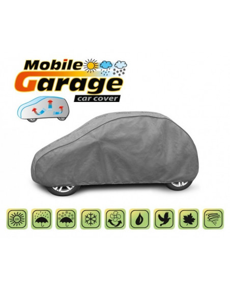 Wysokogatunkowy pokrowiec Mobile Garage to produkt dopasowany do potrzeb kierowców. Pokrowiec wykonany jest z aż 4-warstwowego materiału, który jest gruby, mocny i wytrzymały. Pokrowiec chroni cały samochód przed szkodliwym wpływem środowiska. Pokrowiec Mobile Garage to odpowiednia ochrona pojazdu przez cały rok. Jego funkcjonalność docenić można w każdej porze roku. W sezonie zimowym zapobiega osadzaniu się śniegu, szronu i lodu, a także jest odporny na przymarzanie; na jesieni chroni przed deszczem, wiatrem, liśćmi, sokami z drzew; zaś w porach letnich i wiosennych ochrania przed promieniami UV, pyłem i ptasimi odchodami.