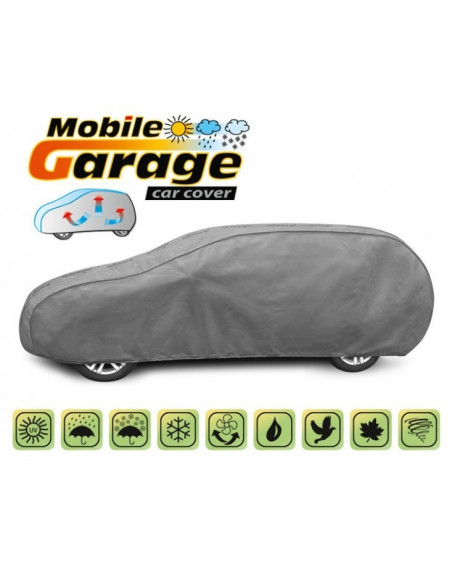 Wysokogatunkowy pokrowiec Mobile Garage to produkt dopasowany do potrzeb kierowców. Pokrowiec wykonany jest z aż 4-warstwowego materiału, który jest gruby, mocny i wytrzymały. Pokrowiec chroni cały samochód przed szkodliwym wpływem środowiska. Pokrowiec Mobile Garage to odpowiednia ochrona pojazdu przez cały rok. Jego funkcjonalność docenić można w każdej porze roku. W sezonie zimowym zapobiega osadzaniu się śniegu, szronu i lodu, a także jest odporny na przymarzanie; na jesieni chroni przed deszczem, wiatrem, liśćmi, sokami z drzew; zaś w porach letnich i wiosennych ochrania przed promieniami UV, pyłem i ptasimi odchodami.