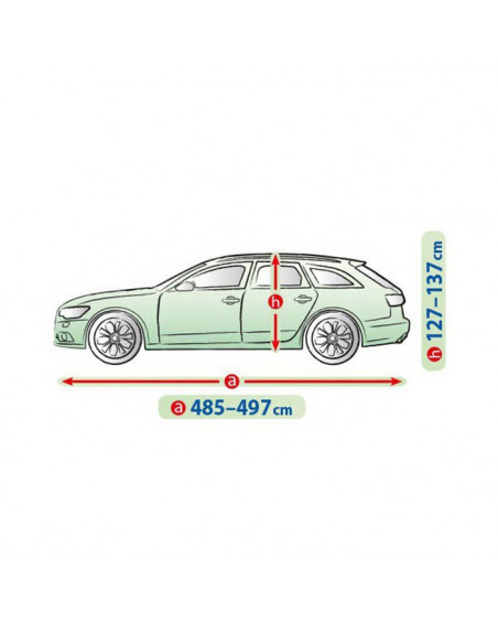 Materiał tekstylny, z którego wykonana jest plandeka dopasuje się zarówno do nieco mniejszego, jak i większego samochodu o podobnym kształcie i wymiarze nie przekraczającym podanego powyżej obwodu.