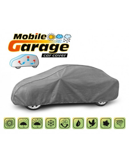 Wysokogatunkowy pokrowiec Mobile Garage to produkt dopasowany do potrzeb kierowców. Pokrowiec wykonany jest z aż 4-warstwowego materiału, który jest gruby, mocny i wytrzymały. Pokrowiec chroni cały samochód przed szkodliwym wpływem środowiska. Pokrowiec Mobile Garage to odpowiednia ochrona pojazdu przez cały rok. Jego funkcjonalność docenić można w każdej porze roku. W sezonie zimowym zapobiega osadzaniu się śniegu, szronu i lodu, a także jest odporny na przymarzanie; na jesieni chroni przed deszczem, wiatrem, liśćmi, sokami z drzew; zaś w porach letnich i wiosennych ochrania przed promieniami UV, pyłem i ptasimi odchodami.