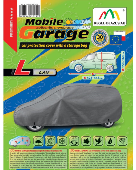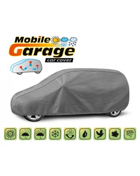 Wysokogatunkowy pokrowiec Mobile Garage to produkt dopasowany do potrzeb kierowców. Pokrowiec wykonany jest z aż 4-warstwowego materiału, który jest gruby, mocny i wytrzymały. Pokrowiec chroni cały samochód przed szkodliwym wpływem środowiska. Pokrowiec Mobile Garage to odpowiednia ochrona pojazdu przez cały rok. Jego funkcjonalność docenić można w każdej porze roku. W sezonie zimowym zapobiega osadzaniu się śniegu, szronu i lodu, a także jest odporny na przymarzanie; na jesieni chroni przed deszczem, wiatrem, liśćmi, sokami z drzew; zaś w porach letnich i wiosennych ochrania przed promieniami UV, pyłem i ptasimi odchodami.