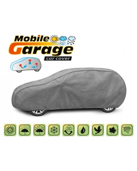 Wysokogatunkowy pokrowiec Mobile Garage to produkt dopasowany do potrzeb kierowców. Pokrowiec wykonany jest z aż 4-warstwowego materiału, który jest gruby, mocny i wytrzymały. Pokrowiec chroni cały samochód przed szkodliwym wpływem środowiska. Pokrowiec Mobile Garage to odpowiednia ochrona pojazdu przez cały rok. Jego funkcjonalność docenić można w każdej porze roku. W sezonie zimowym zapobiega osadzaniu się śniegu, szronu i lodu, a także jest odporny na przymarzanie; na jesieni chroni przed deszczem, wiatrem, liśćmi, sokami z drzew; zaś w porach letnich i wiosennych ochrania przed promieniami UV, pyłem i ptasimi odchodami.