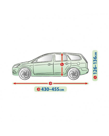 Materiał tekstylny, z którego wykonana jest plandeka dopasuje się zarówno do nieco mniejszego, jak i większego samochodu o podobnym kształcie i wymiarze nie przekraczającym podanego powyżej obwodu.