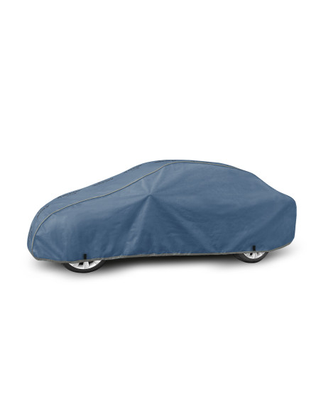 Niezwykłe własciwości wielowarstwowego materiału sprawiają, że pokrowiec nie przemaka, przy jednoczesnym odprowadzaniu pary wodnej spod pokrowca na zewnątrz.  Każda oznaka wilgoci, która zgromadzi się pod pokrowcem szybko wyparuje, co pozwoli uniknąć rdzewieniu samochodu oraz powstawaniu pleśni. Pokrowiec przystosowany jest zarówno do doraźnego jak i długotrwałego stosowania. Pokrowiec można prać ręcznie w temperaturze 40 stopni. Pokrowiec ma kolor granatowy, który jest niezwykle praktyczny a zarazem świetnie się prezentuje. Przez środek pokrowca biegnie napis przedstawiający nazwę producenta i logo firmy oraz nazwę materiału z którego został zrobiony- da Ci to gwarancję oryginalności i wysokiej jakości produktu. Różnorodność kształtów i rozmiarów sprawia, że możesz wybrać pokrowiec, który dobrze dopasuje się do Twojego samochodu.