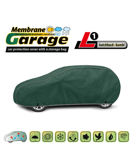 Wysokogatunkowy pokrowiec Membrana Garage to produkt dopasowany do potrzeb kierowców. Pokrowiec wykonany jest w całości aż z 4-warstwowego materiału, który jest gruby, mocny i wytrzymały. Pokrowiec chroni cały samochód przed szkodliwym wpływem środowiska. Pokrowiec Membrana Garage to odpowiednia ochrona pojazdu przez cały rok. Jego funkcjonalność docenić można w każdej porze roku. W sezonie zimowym zapobiega osadzaniu się śniegu, szronu i lodu, a także jest odporny na przymarzanie; na jesieni chroni przed deszczem, wiatrem, liśćmi, sokami z drzew; zaś w porach letnich i wiosennych ochrania przed promieniami UV, pyłem i ptasimi odchodami.