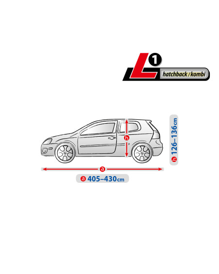 • Pasuje na pojazdy o wymiarach: długość 406-430 cm, maksymalny obwód 1156 cm