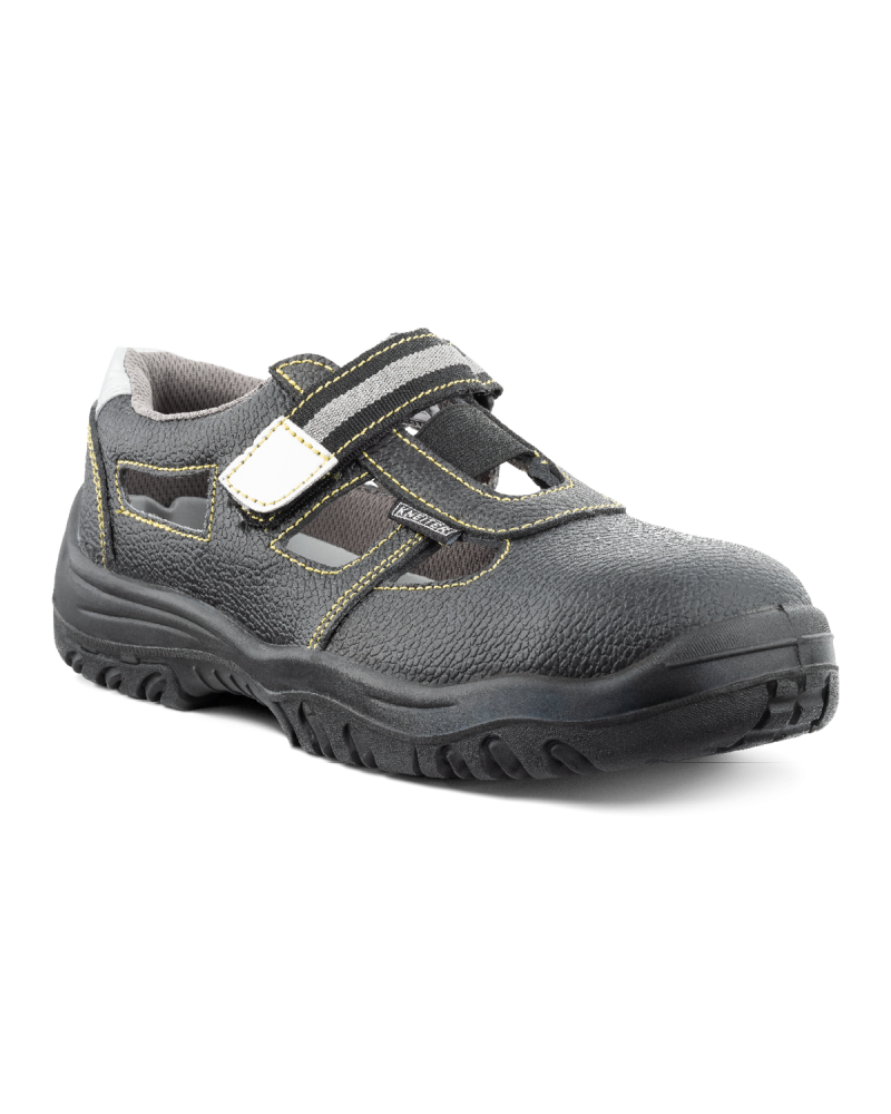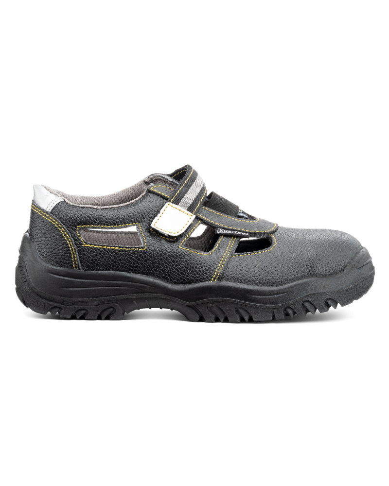 Sandały bezpieczne Black Kneiter doskonale sprawdzą się w pracy jak i na co dzień. Produkt jest lekki, elastyczny dzięki zastosowaniu podeszwy z poliuretanu. Sandał uniwersalny przeznaczony do prac o zwiększonym stopniu ryzyka, zabezpieczający przed urazem przedniej części stopy. Zalecany na stanowiska pracy oraz wszędzie tam, gdzie zachodzi wymóg zastosowania obuwia bezpiecznego w podstawowej klasie ochrony zgodnie z zaleceniami przepisów BHP.