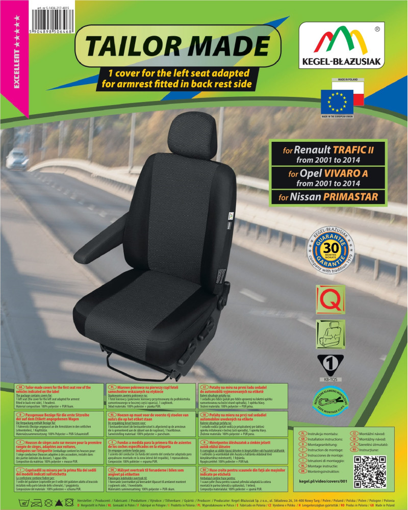 Remark 1: Only the correct application of the cover shall ensure the safe use of the cover on the seats with the side airbags.
