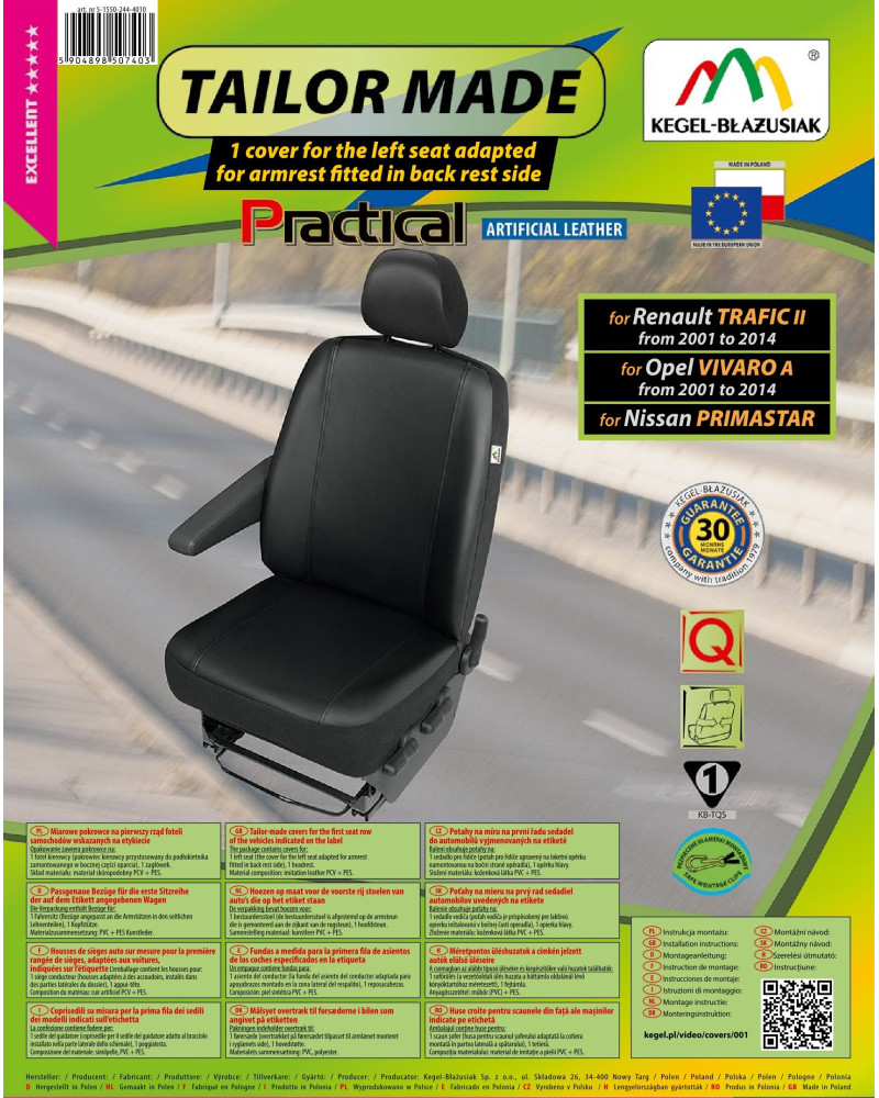 Waterproof, stain-resistant and extremely durable material ensures practical use. The offer is addressed to owners of specific delivery vans and minibuses who want to take care of the interior of their vehicles and add style and elegance to them. The black, universal colour scheme fits perfectly into the interior of any vehicle. The covers look great in any car. They are exceptionally elegant, adding class and charm to any interior. The covers are equipped with the necessary fastened openings that allow you to put on the cover without having to remove the headrests and make additional openings. The design of the cover also allows it to be placed on a seat with an armrest, if the seat has one. The set is equipped with special mounting clips, and fasteners are sewn into the material, making it very easy to install. Any dirt on the cover is very easy to remove – just wipe it with a damp cloth. A product from the renowned company Kegel-Błażusiak, the largest manufacturer and exporter in the car cover and workwear industry. Years of experience and an increasingly sophisticated range of products mean that this brand's covers can be described as the best in Poland. Manufactured in Poland, mainly from Polish raw materials, in compliance with all European Union quality standards. By purchasing Kegel-Błażusiak covers, you are supporting the Polish economy and protecting Polish jobs.