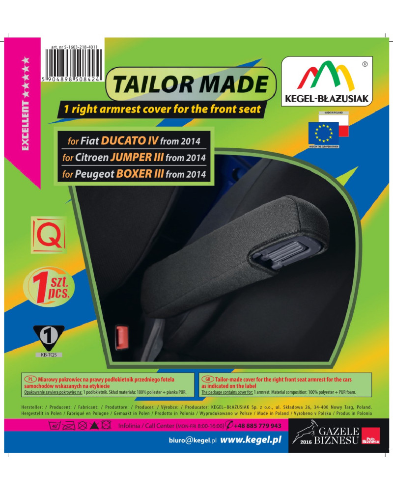 TAILOR MADE covers are made of high-quality upholstery fabric (both front and back), which, combined with careful attention to even the smallest details, will satisfy the most demanding customers. Thanks to their appropriate, spacious design and specific fit to your car, the covers fit the seats perfectly. The fabric adheres perfectly to the seats, replacing their original upholstery. Laminating the entire fabric on the inside with flame-retardant PUR foam prevents them from slipping.