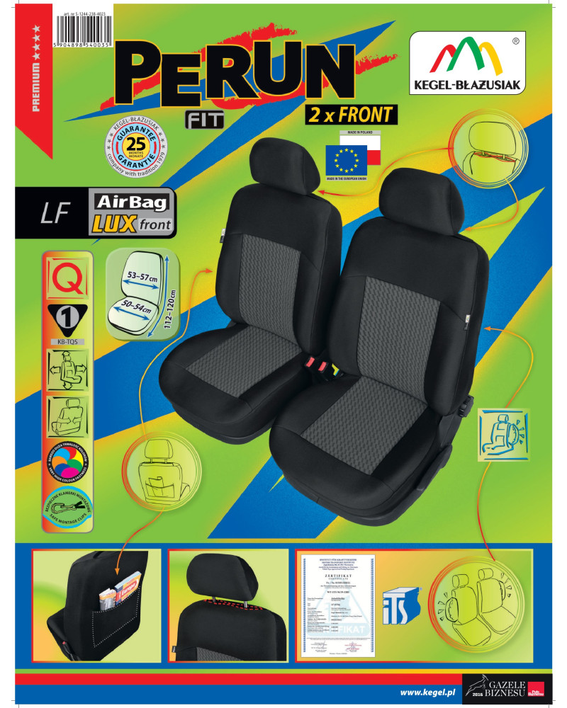 PERUN well-fitted covers are extremely elegant car seat covers designed by professionals from the highest quality materials. The highly durable, strong, flame-retardant upholstery fabric from the USA and Poland, additionally laminated on the inside with foam, ensures good adhesion of the covers and fits well to the seats, replacing their original upholstery. The fabric used to make the covers is very durable and resistant, and above all, flame-retardant. This type of material is often used by car manufacturers to produce "high-end" seat covers. The pleasant texture of high-quality velour fabric, preserved in a classic graphite colour scheme with a delicate beige pattern, suits the interior of almost any car. Functionality goes hand in hand with great looks. The elegant look combined with extremely professional workmanship will delight everyone. The PERUN seat covers will satisfy even the most sophisticated tastes of very demanding customers. They will add style and elegance to the interior of your car and protect the upholstery from all kinds of dirt and most types of damage. When you buy our seat covers, you can be sure that you are getting a top-class product that you will be able to use for years to come.