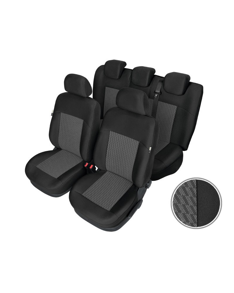 PERUN well-fitted covers are extremely elegant car seat covers designed by professionals from the highest quality materials. The highly durable, strong, flame-retardant upholstery fabric from the USA and Poland, additionally laminated on the inside with foam, ensures good adhesion of the covers and fits well to the seats, replacing their original upholstery. The fabric used to make the covers is very durable and resistant, and above all, flame-retardant. This type of material is often used by car manufacturers to produce "high-end" seat covers. The pleasant texture of high-quality velour fabric, preserved in a classic graphite colour scheme with a delicate beige pattern, suits the interior of almost any car. Functionality goes hand in hand with great looks. The elegant look combined with extremely professional workmanship will delight everyone. The PERUN seat covers will satisfy even the most sophisticated tastes of very demanding customers. They will add style and elegance to the interior of your car and protect the upholstery from all kinds of dirt and most types of damage. When you buy our seat covers, you can be sure that you are getting a top-class product that you will be able to use for years to come.