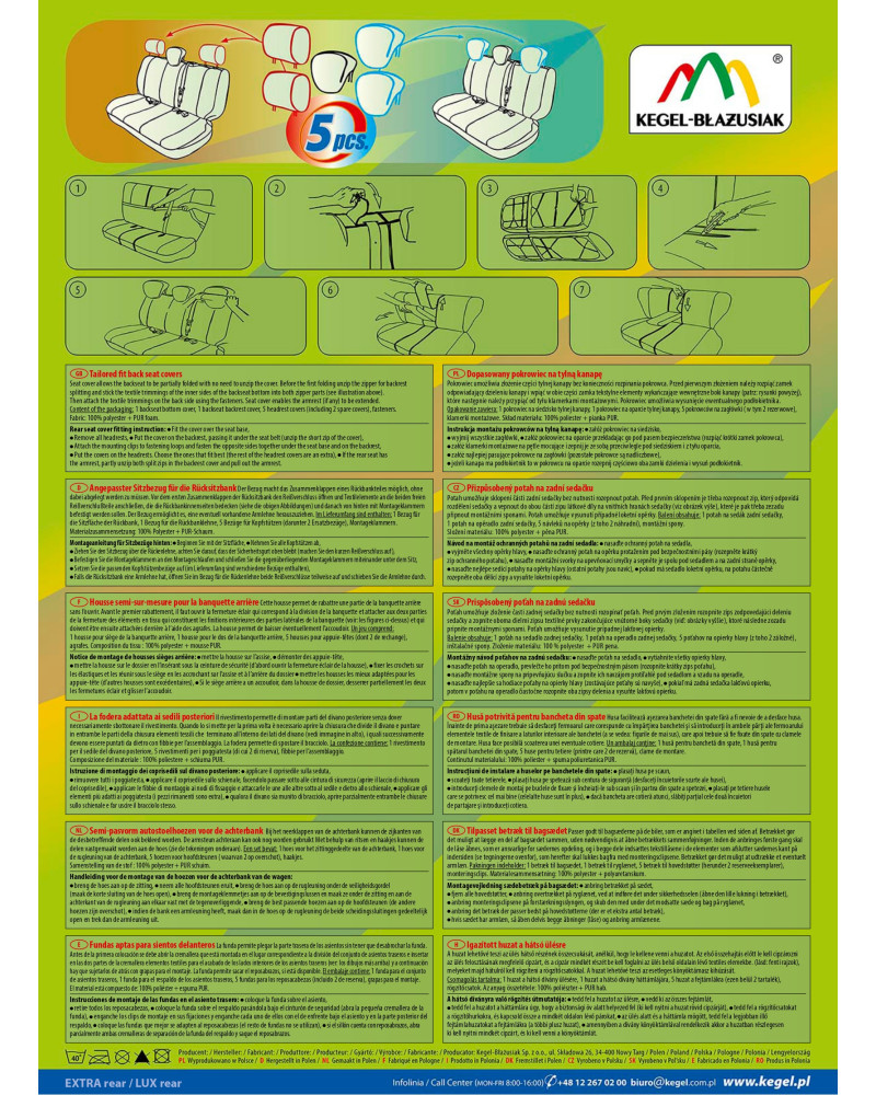 The advantage of POSEIDON covers is that they cover the entire rear surface of the backrest. This feature makes them look great from the back of the seat, while protecting it from dirt and damage (this is especially important for people with small children). There is an additional pocket sewn into the back of the passenger cover for storing small items. The covers are easy to keep clean as they can be washed at 40° according to the information on the label. The set is equipped with special clips, and fasteners are sewn into the material, which, with the help of the included illustrated instruction manual, ensures very easy installation. The covers protect the original upholstery very well against all kinds of dirt and most damage, as the material is extremely strong and durable, resistant to abrasion and tearing. The elegant, classic colours look great in the interior of any vehicle. If you want to refresh the interior of your car, if you want to add style and elegance to it, you've come to the right place. This product is manufactured by Kegel-Błażusiak, a well-known and highly regarded company in the car cover and workwear industry. It is produced in Poland, mainly from Polish raw materials, in compliance with all European Union quality standards. Years of experience and an increasingly sophisticated range mean that this brand's covers can be described as the best in Poland. Despite the use of expensive, high-quality materials, we offer the POSEIDON cover at a very attractive price.