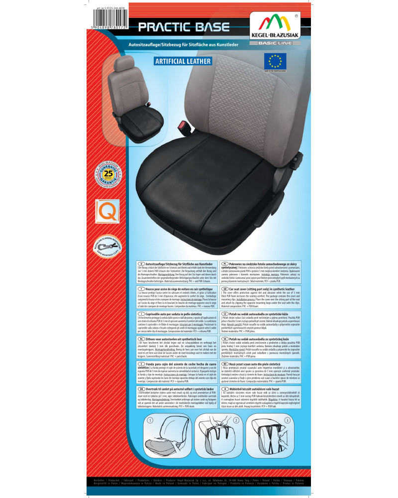 The cover offers protection against dirt and abrasion while the use of 5 mm thick PUR foam increases the seating comfort. Material composition: PVC + PUR foam
