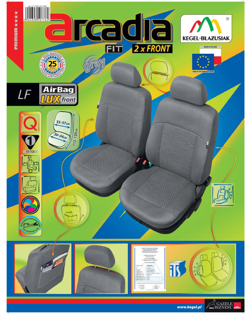 The covers have special, secure seams for airbags, making them suitable for cars with both side airbags in the seats and standard seats. Professional workmanship and safety of use are confirmed by a certificate and tests carried out by the Motor Transport Institute.