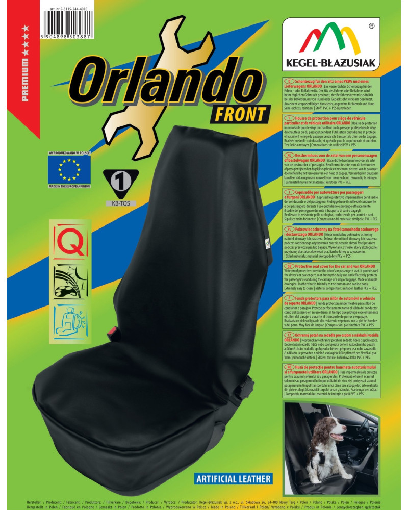 The ORLANDO protective cover is waterproof and oil-resistant. Made of extremely durable and damage-resistant eco-leather. It will provide complete protection for your seat upholstery! Thanks to its design and good grip, it will fit well on the seat. The surface area of the material is large enough to protect the entire seat – not only the backrest and seat, but also the sides and headrest. The cover is made in a universal size and fits all standard car seats. It is adapted to seats equipped with side airbags, which ensures safety of use. Don't wait! Protect your car upholstery now!