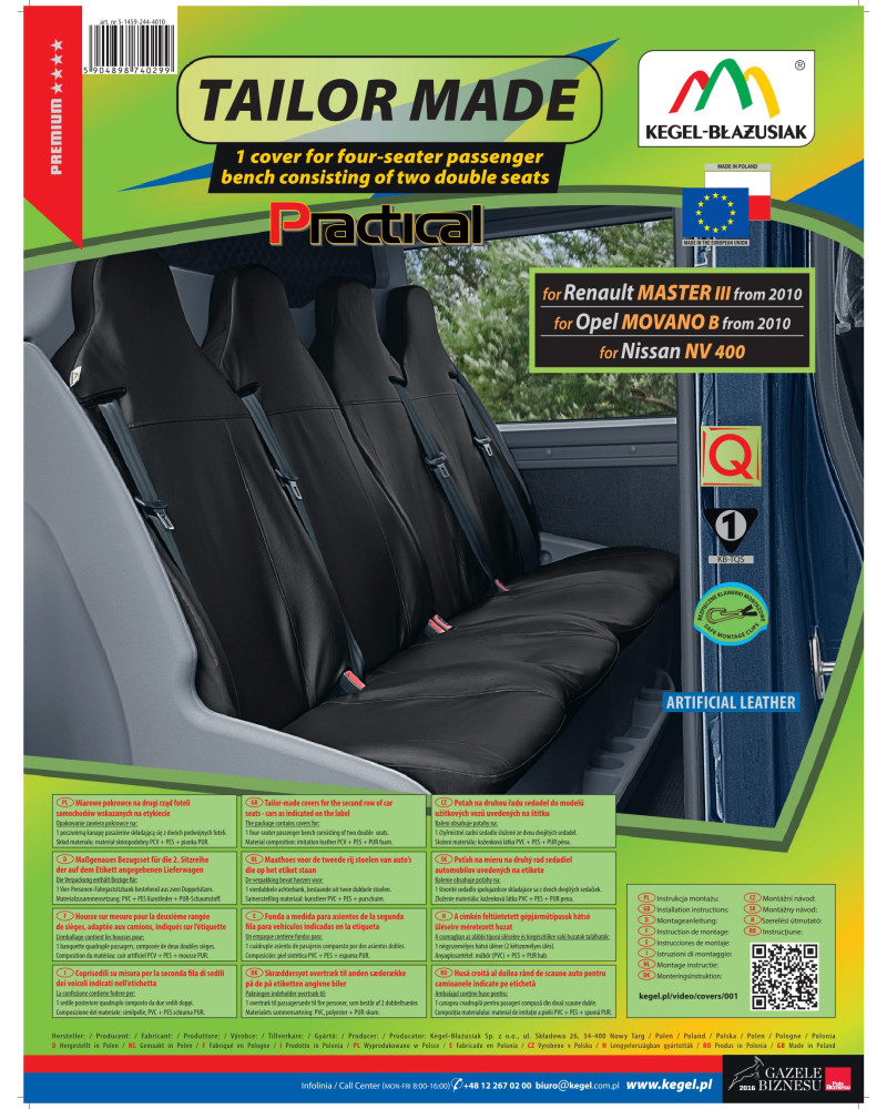 Practical tailor-made covers are made of high-quality upholstery fabric (both front and back), which, combined with careful attention to even the smallest details, will satisfy even the most demanding customers. Thanks to their appropriate, spacious design and specific fit to your car, the covers fit the seats perfectly. The material adheres perfectly to the seats, replacing their original upholstery. PRACTICAL car covers protect the original upholstery of the car very well against wear and tear, and their tasteful, modern design creates a positive aesthetic impression. The cover is very easy to install and clean. The solid workmanship guarantees high quality and long service life. The waterproof, non-staining and extremely durable material ensures practical use.