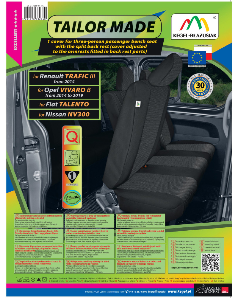 TAILOR MADE covers are made of high-quality upholstery fabric (both front and back), which, combined with careful attention to even the smallest details, will satisfy the most demanding customers. Thanks to their appropriate, spacious design and specific fit to your car, the covers fit the seats perfectly. The fabric adheres perfectly to the seats, replacing their original upholstery. Laminating the entire fabric on the inside with flame-retardant PUR foam prevents them from slipping.