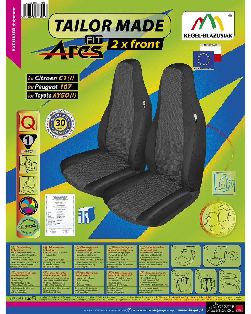 The covers have special, secure seams for airbags, making them suitable for cars with both side airbags in the seats and standard seats. Professional workmanship and safety of use are guaranteed by certification and testing by the Motor Transport Institute.