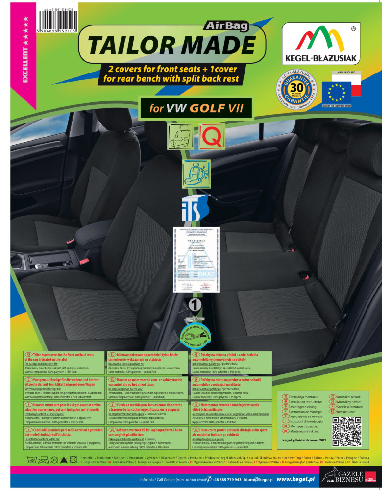 The covers have special, secure seams for airbags, making them suitable for cars with both side airbags in the seats and standard seats. Professional workmanship and safety of use are guaranteed by certification and testing by the Motor Transport Institute.