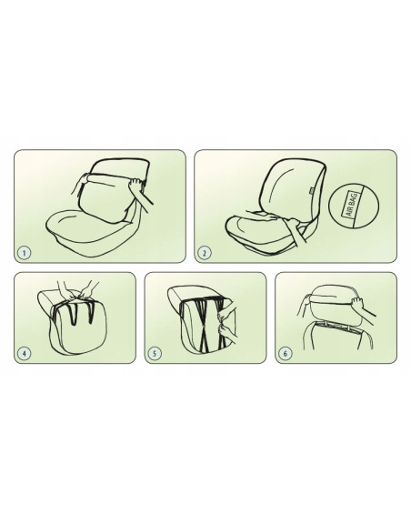 If it not possible to fit the cover in such manner that the cover edge with label “SRS-AIRBAG” overlaps the external edge of the car seat back, then the cover must not be used on seats with airbags.