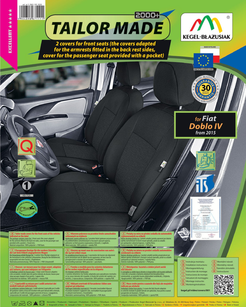 • 2 front seats (the covers adapted for the armrests fitted in the back rest sides, cover for the passenger seat provided with a pocket)